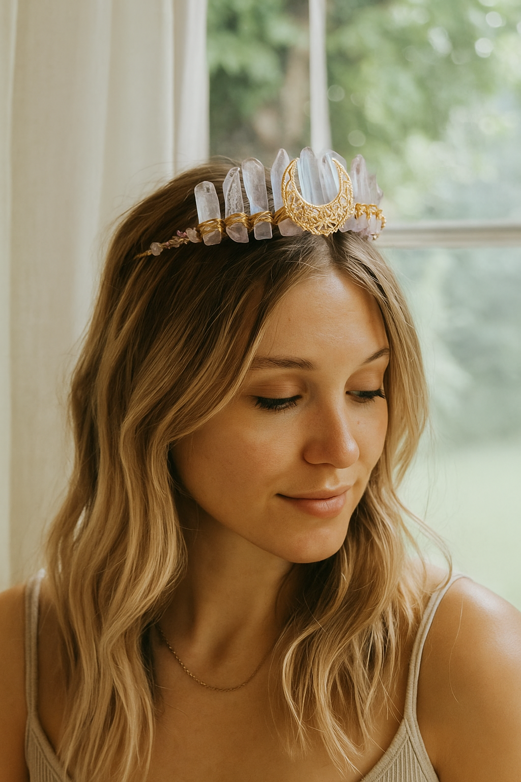 ROSE QUARTZ GOLD HALO GODDESS CRYSTAL CROWN