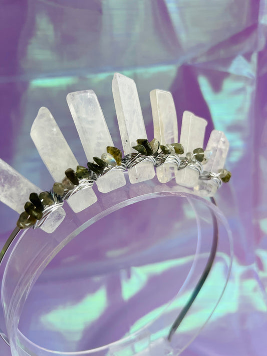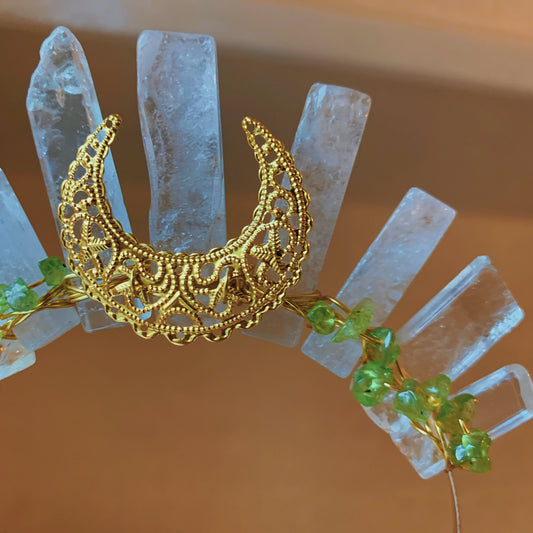 CLEAR QUARTZ & PERIDOT GODDESS CRYSTAL CROWN