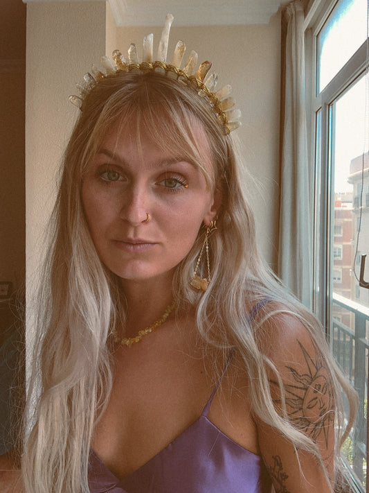 CLEAR QUARTZ & SUNSTONE GODDESS CRYSTAL CROWN