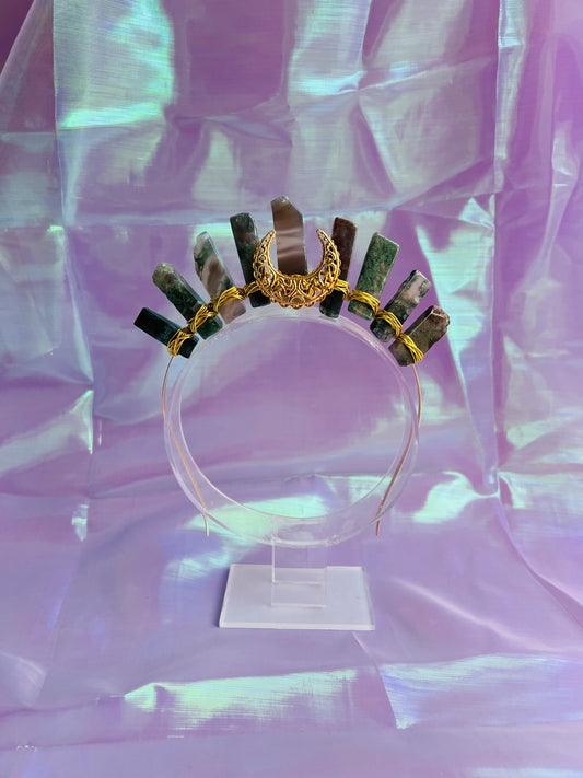 MOSS AGATE GOLD GODDESS CRYSTAL CROWN