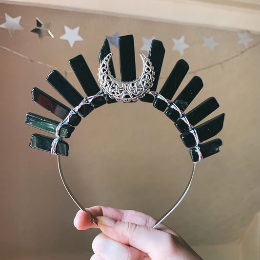 BLACK AGATE MOON SILVER GODDESS CRYSTAL CROWN