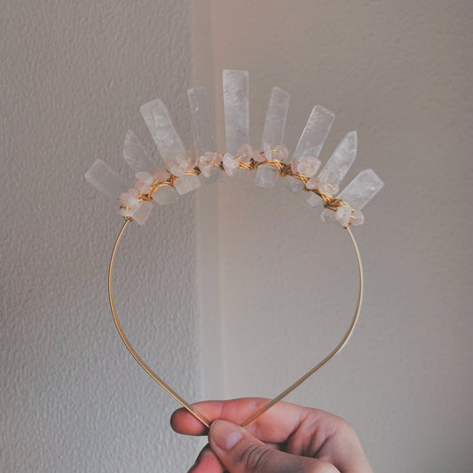 CLEAR QUARTZ & ROSE QUARTZ GODDESS CRYSTAL CROWN