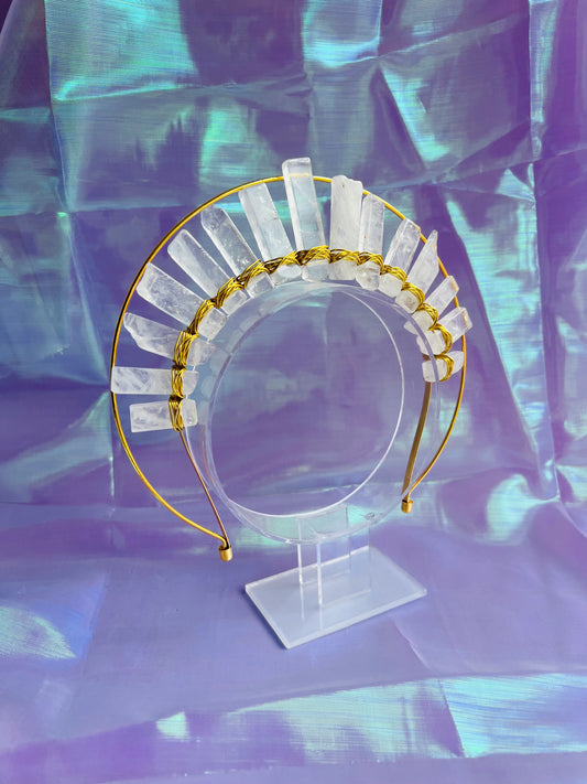 CLEAR QUARTZ GOLD HALO GODDESS CRYSTAL CROWN