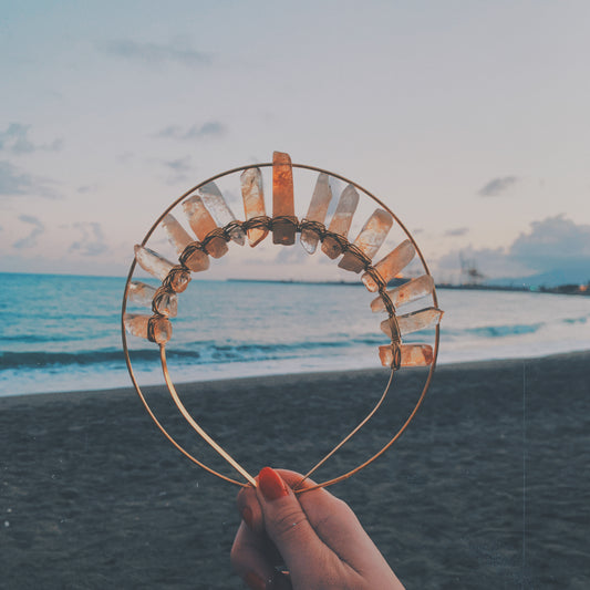 ROSE QUARTZ GOLD HALO GODDESS CRYSTAL CROWN