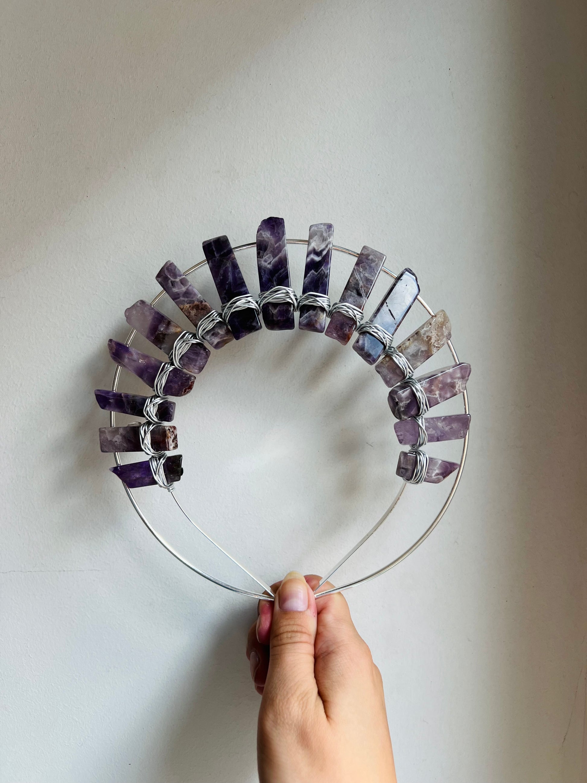 AMETHYST GOLD SILVER HALO GODDESS CRYSTAL CROWN