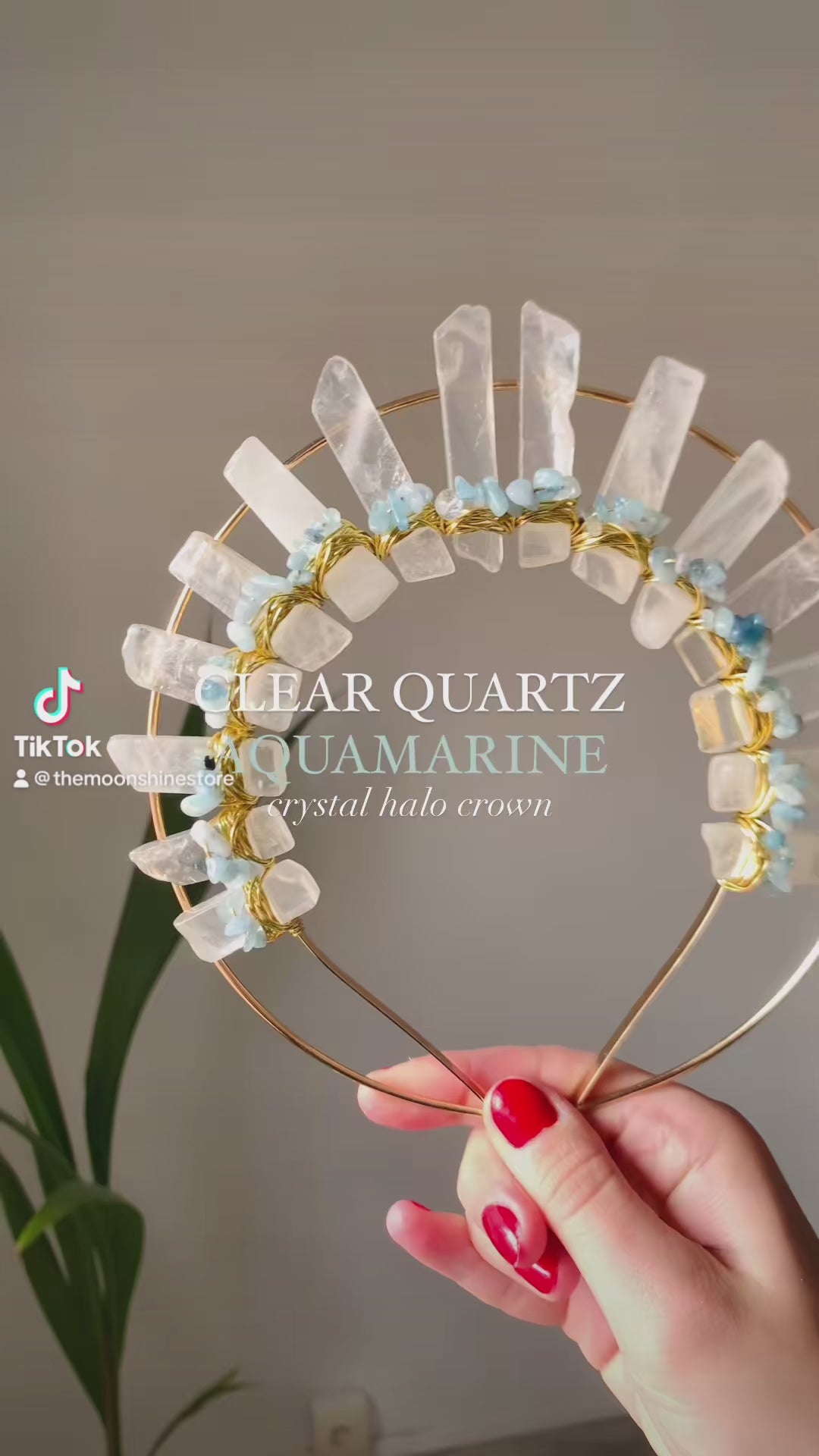 CLEAR QUARTZ & AQUAMARINE GODDESS HALO CRYSTAL CROWN