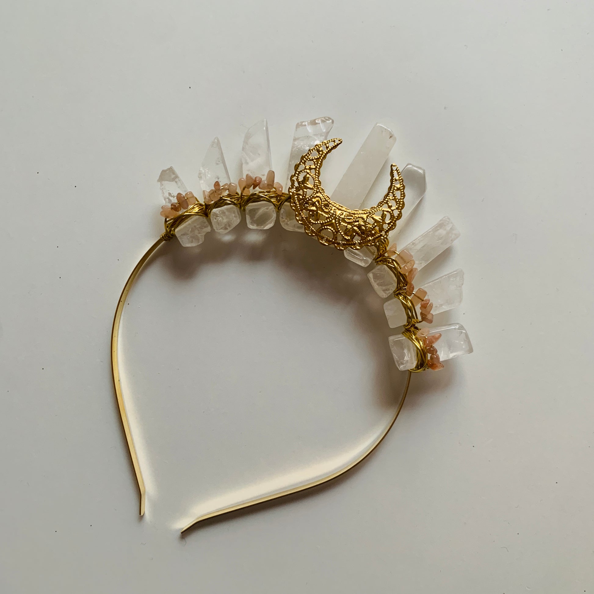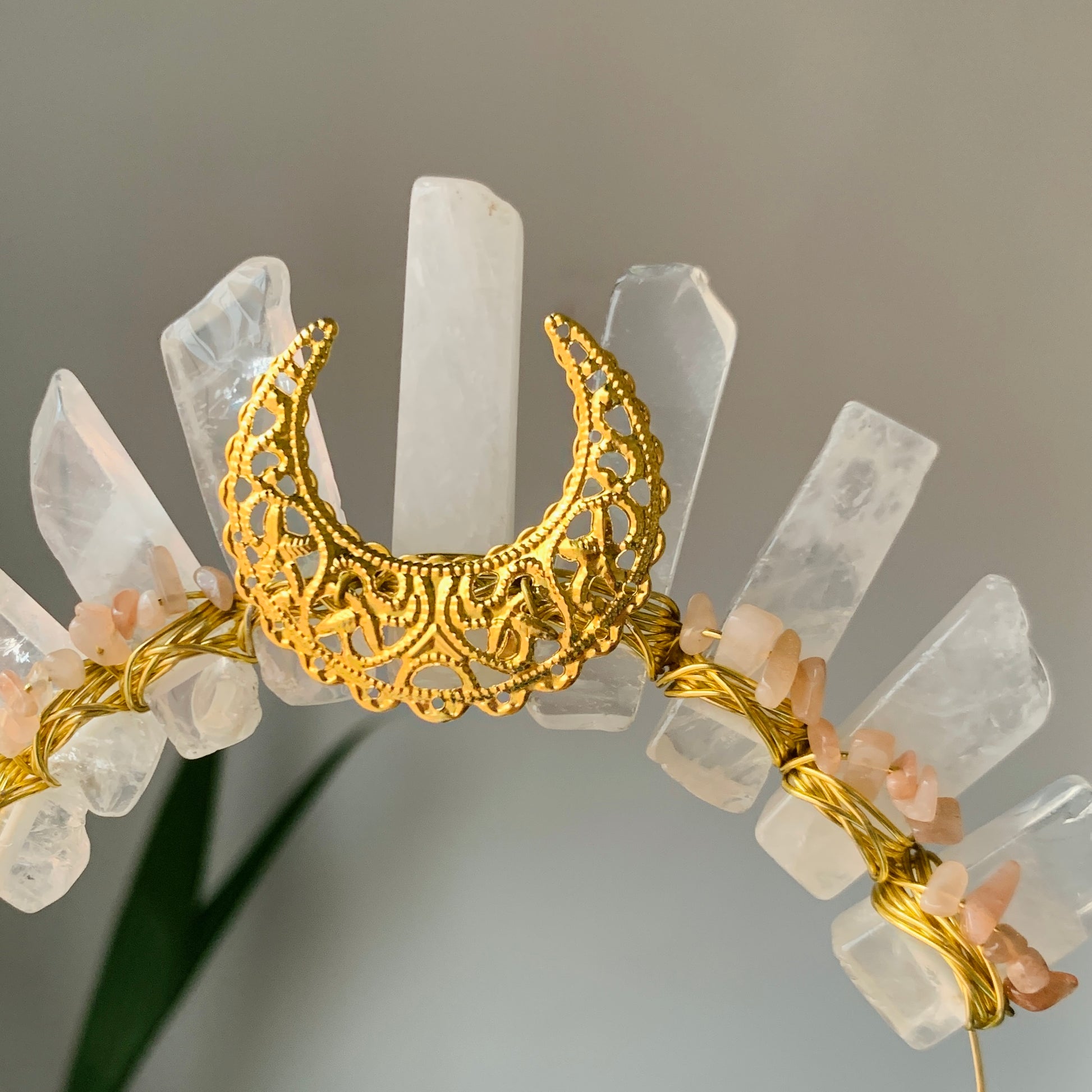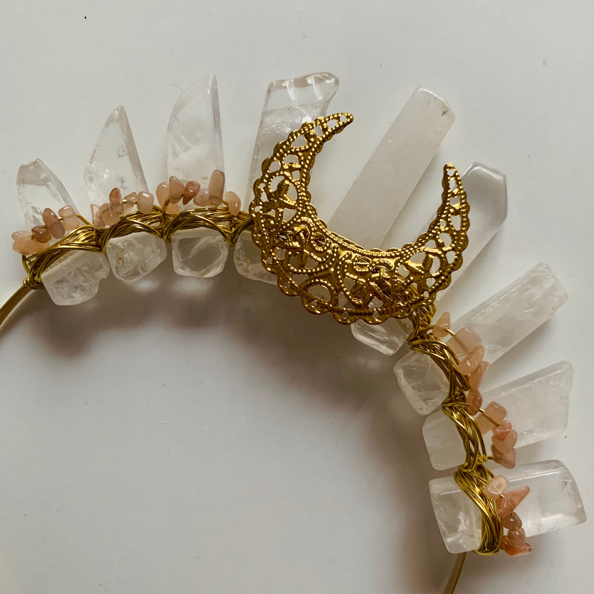 CLEAR QUARTZ & SUNSTONE GODDESS CRYSTAL CROWN